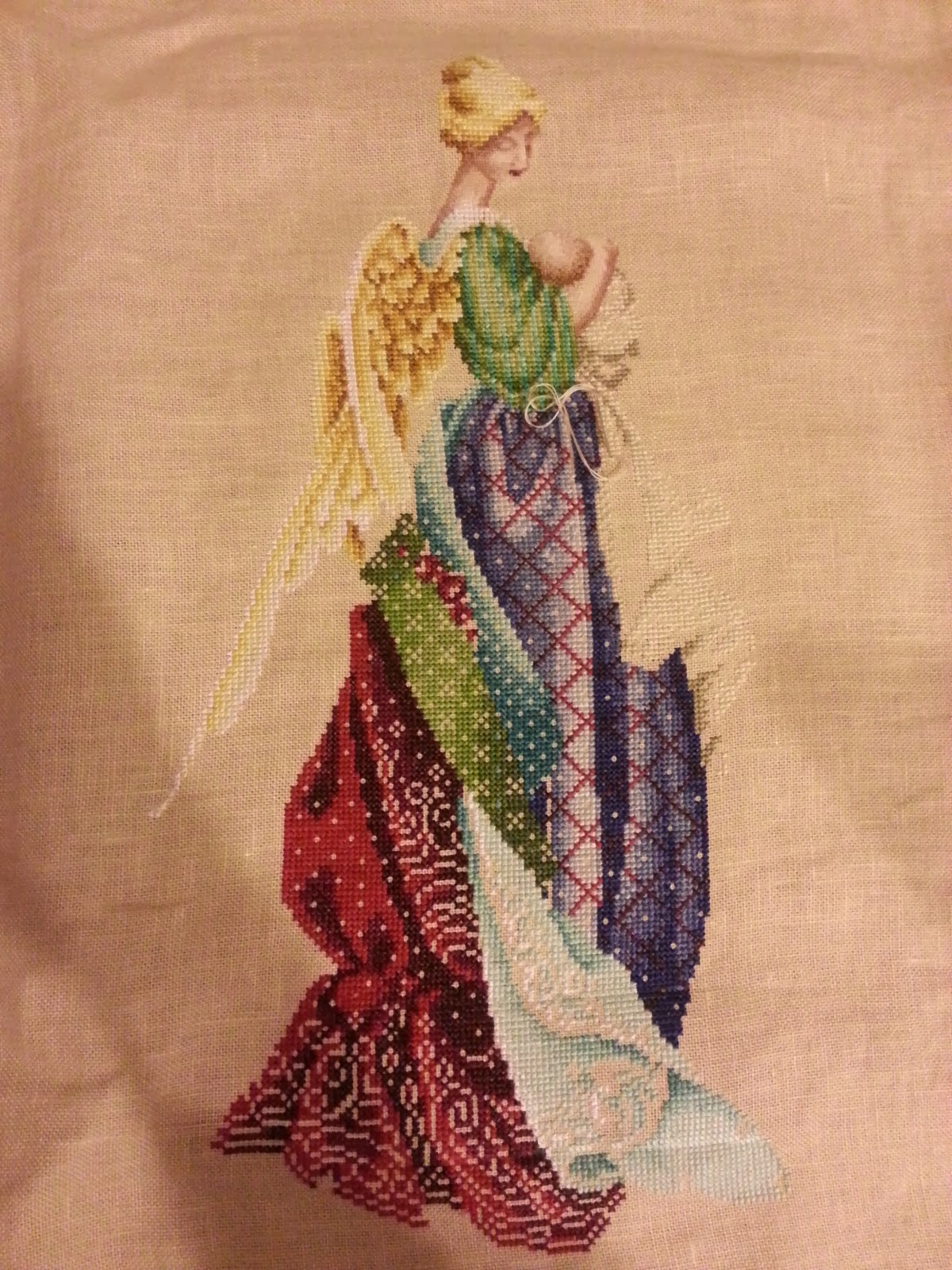 This will be for my Christmas memory angel to hold but I didn't have enough of the green on the bobbin. The perils of a project that uses three strands.
